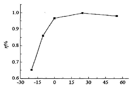 充電效率隨溫度變化趨勢圖
